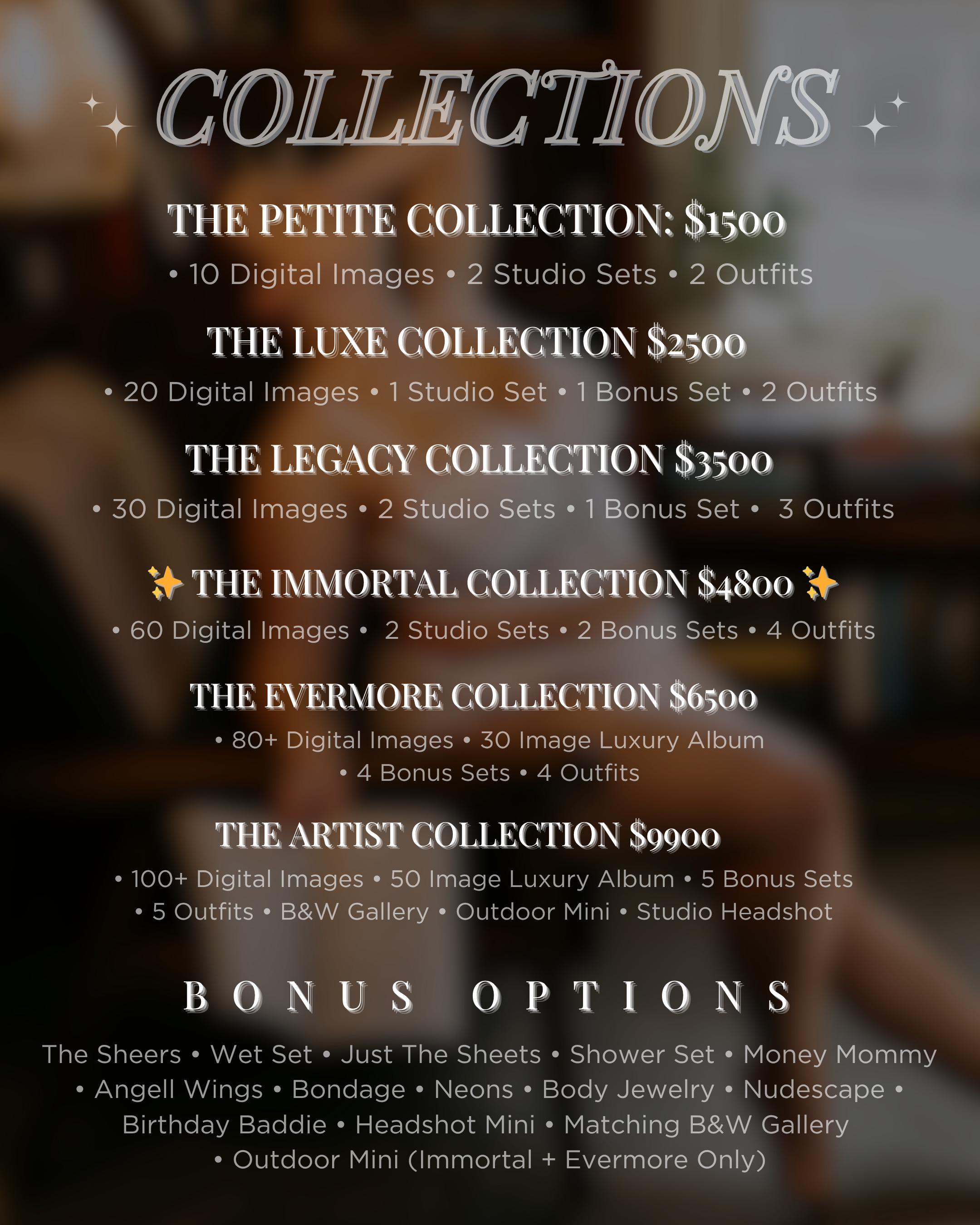 Collection prices range from $1500-$9900