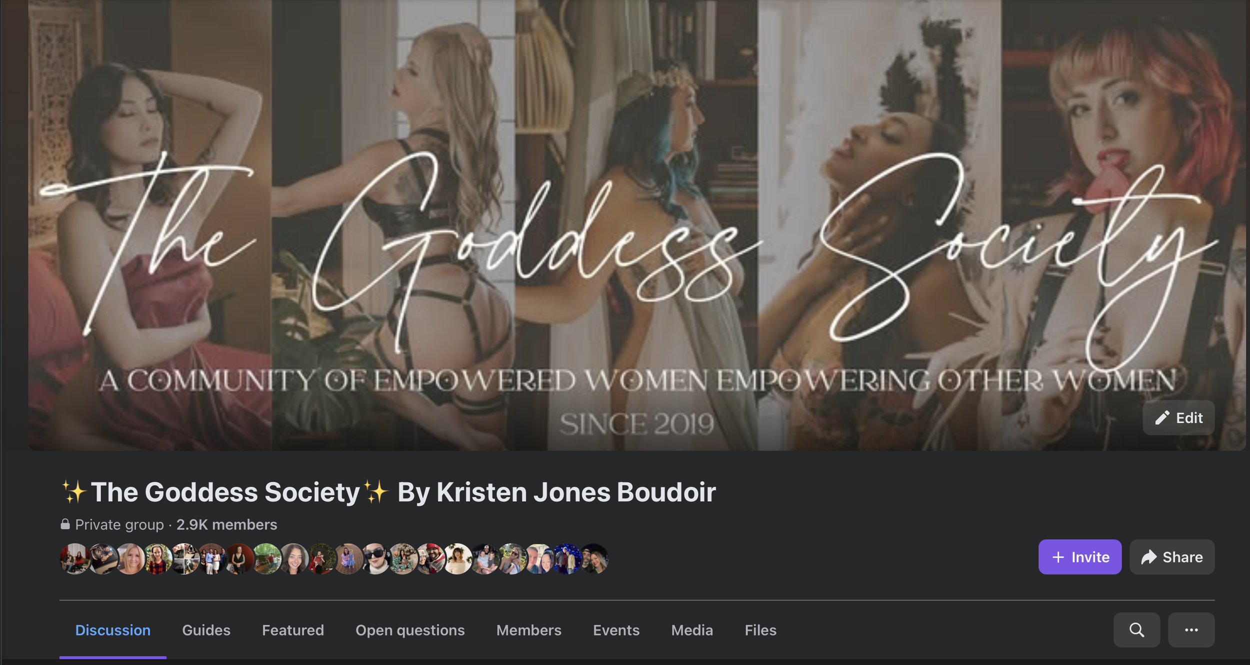 Kristen is a boudoir photographer, mother, wife, plant keeper, book reader, and professional hype woman. She has striven to create a space where women can simply be themselves without having to worry about their husbands or brothers-in-law seeing what they think about the smutty novels they read, the amount of money they spent at the plant nursery, or the sexy pictures they took for their partner. The Goddess Society was created as a space for women to be able to shed every other facet of their identity and just BE. If you’ve been looking for a group of like-minded individuals who are looking for a positive space in a stressful and scary world, you’ve found the place.
